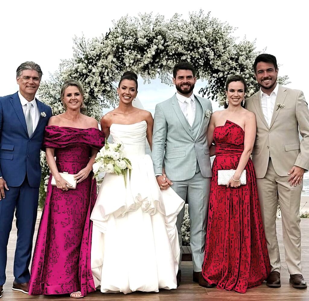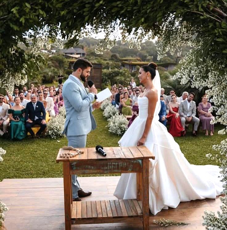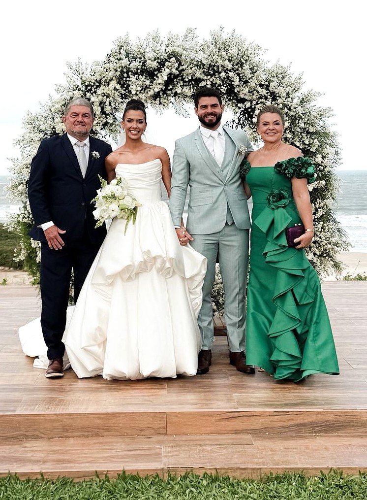 Emoldurados pela maravilhosa natureza da Praia do Rosa, Bia e Rafael formalizaram os votos com as bênçãos dos pais Viviany e Orlando Carrocini e Luciara e Sérgio Gonçalves Lordelo, e o testemunho de queridos amigos.