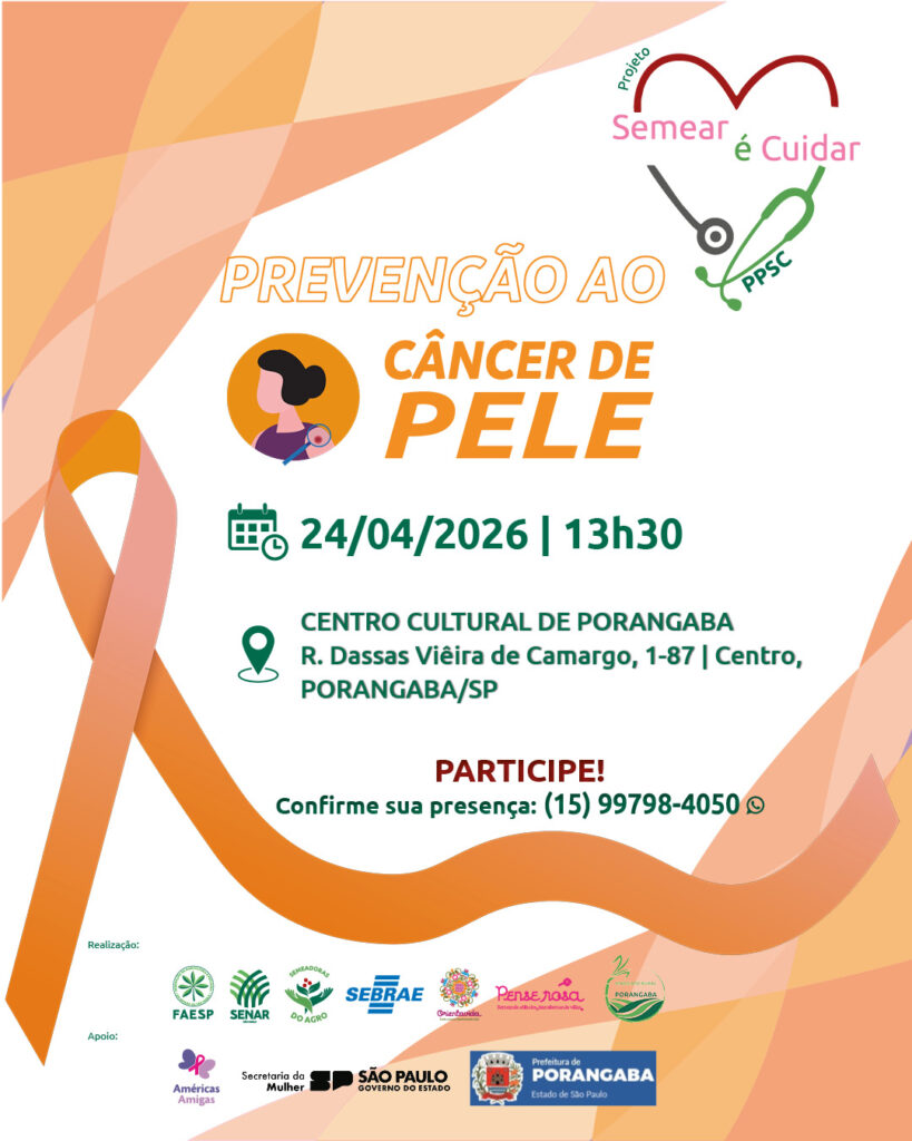 A nova campanha do projeto “Semear é Cuidar”, com foco no câncer de pele, será lançada na sexta-feira (24/04), em Porangaba. A iniciativa é uma extensão do Programa Promovendo Saúde no Campo (PPSC/Senar-SP), realizado pelo Sindicato Rural da cidade, com o apoio da Comissão Semeadoras do Agro, da Federação da Agricultura e Pecuária do Estado de São Paulo (Faesp), em parceria com as ONGs Orientavida e Pense Rosa, e a colaboração de prefeituras e secretarias municipais de saúde.