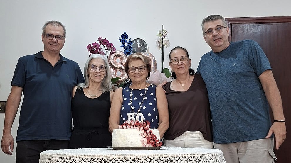 Nossas felicitações especiais à querida Luzia Fantinatti, voluntária atuante de nossa comunidade, que festejou seus 80 anos recentemente, cercada de muito amor e carinho pelos filhos, noras e familiares. Desejamos à aniversariante uma vida com muita saúde, alegrias e bons momentos em família.