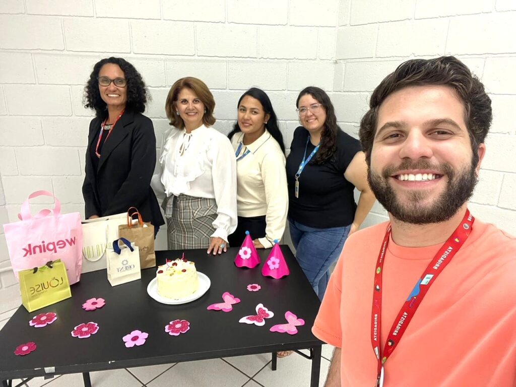 A querida Márcia ganhou uma festa surpresa da equipe do RH com direito a bolo e um animado Parabéns a você.