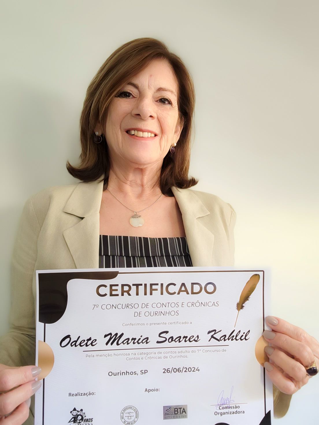 A aluna Odete Kahil, da Universidade Aberta à Terceira Idade do Centro Universitário de Ourinhos – UATI-UNIFIO, ficou entre os finalistas do 7º Concurso de Contos e Crônicas de Ourinhos. Odete participou na categoria Contos com o conto Conflitos, sendo agraciada com certificado que foi entregue no dia 26 de junho, no Instituto OSNB.