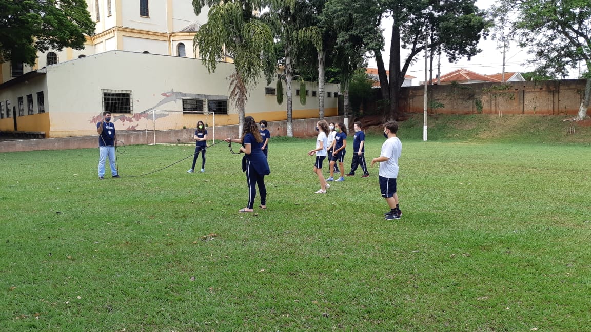 No intervalo, amam estar ao ar livre, aproveitando o espaço composto por gramado, quadra e campo de futebol, onde esbanjando saúde e energia, descontraindo e se divertindo.