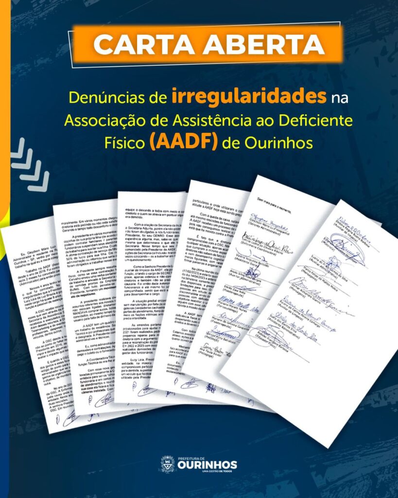 Após vir a público um escândalo envolvendo a diretoria da Associação de Assistência ao Deficiente Físico (AADF), a administração municipal decidiu não mais financiar a entidade. A Prefeitura de Ourinhos, sob uma gestão conhecida por sua seriedade, transparência e responsabilidade, anunciou planos de assumir os serviços oferecidos pela AADF, com o compromisso de ampliação e melhorias significativas.