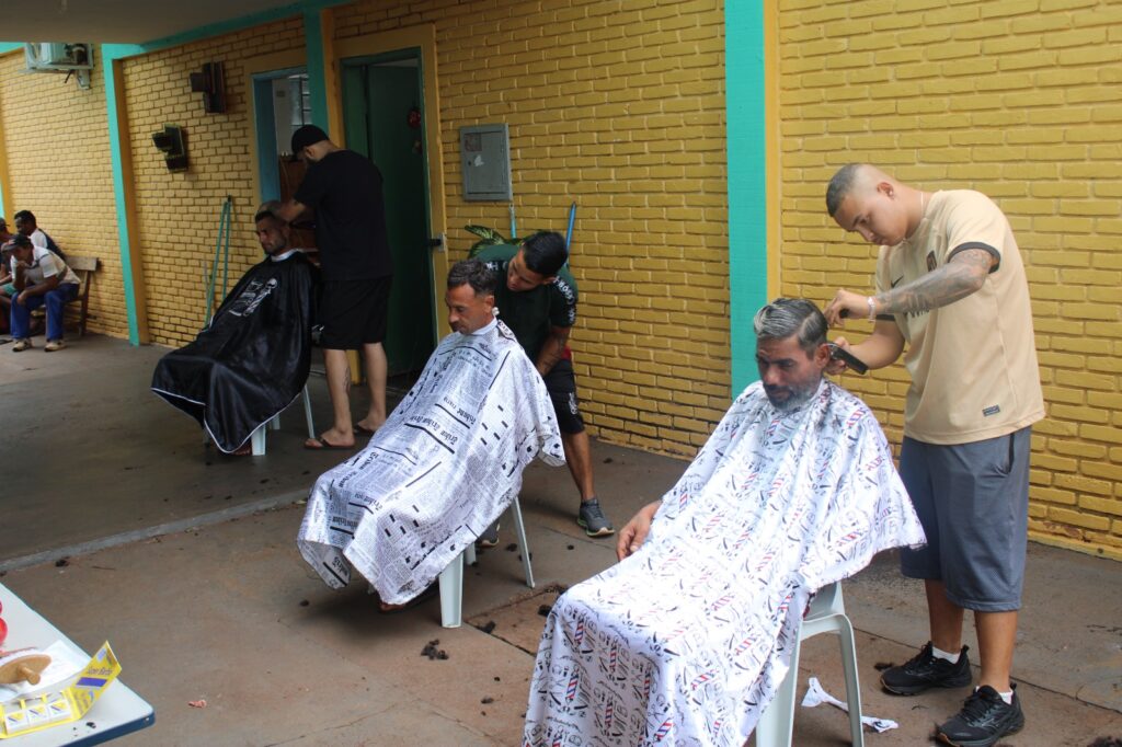 Usuários foram presenteados com cortes de cabelo e barba, além de um lanche coletivo no final da ação