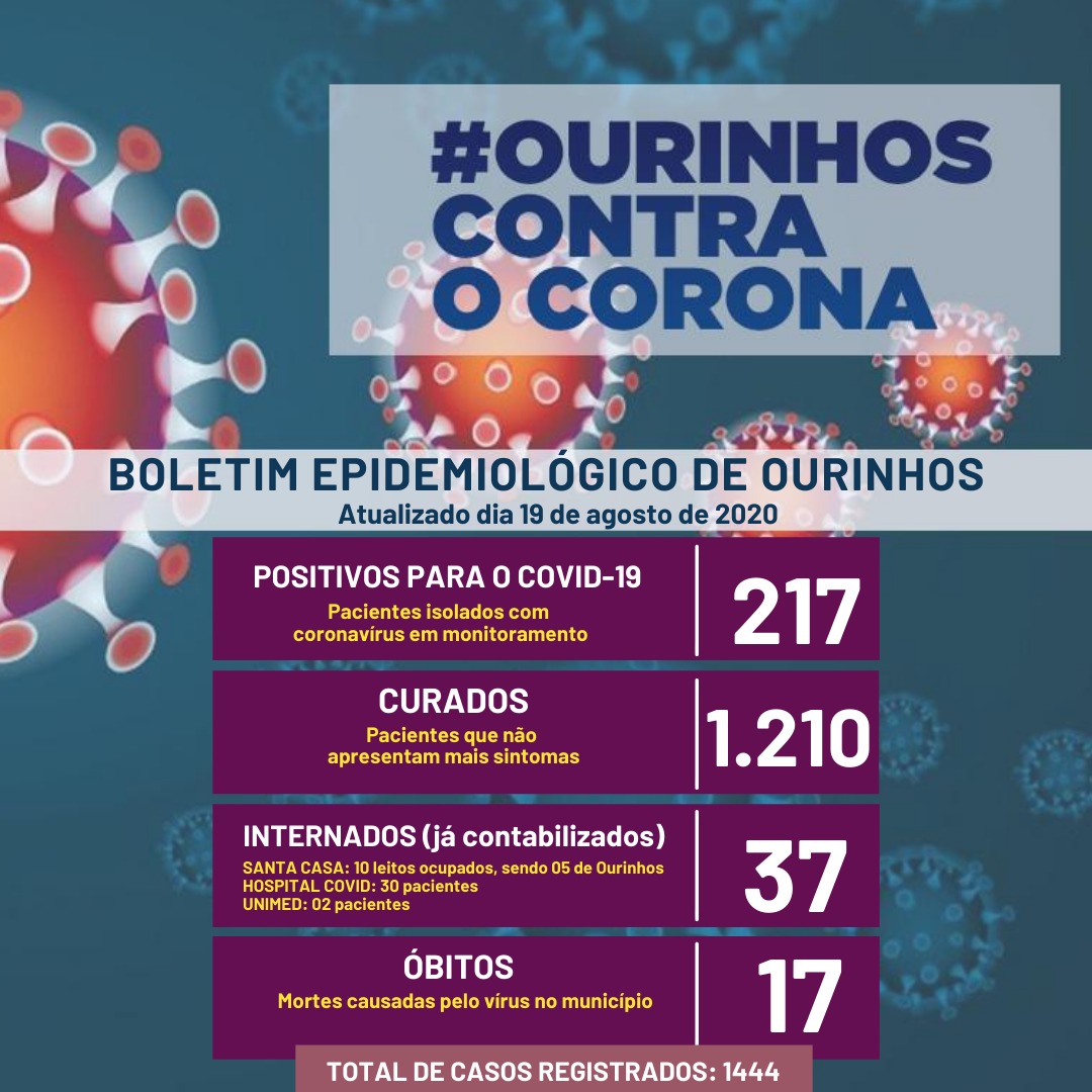 Levando em consideração os dados de positivos, curados e óbitos, a cidade contabiliza 1.444 casos notificados.