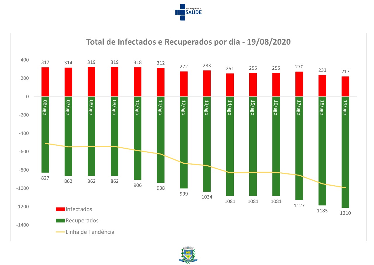 Nesta quarta-feira (19), mais 27 pacientes que aguardavam o período de isolamento em casa receberam alta. Ao total, 1.210 pessoas que foram infectadas pelo coronavírus já estão curadas da doença. Outros 11 novos casos foram registrados, totalizando 217 positivos ativos.