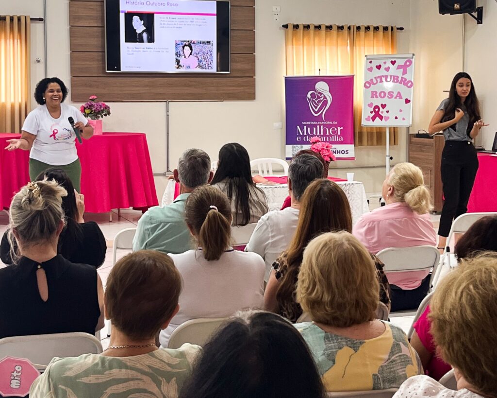 Para marcar o encerramento da iniciativa, a Secretaria promoveu uma palestra especial com a enfermeira “Joelma, que orientou as participantes sobre a prevenção do câncer de mama, a importância do autocuidado, formas de realizar o autoexame e outros cuidados essenciais para a detecção precoce da doença.”