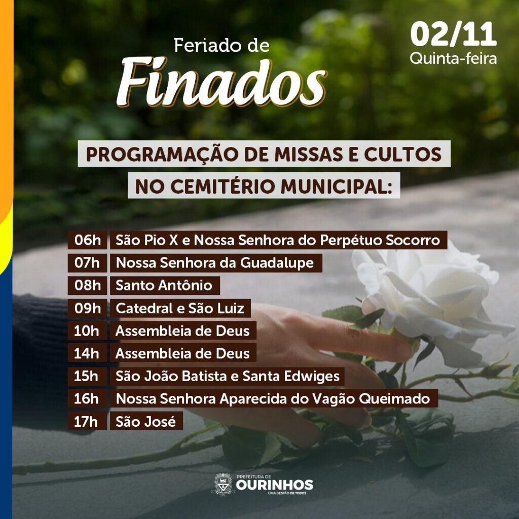 O Cemitério Municipal abrirá suas portas das 6h às 18h, permitindo que as pessoas participem das atividades em homenagem aos entes queridos falecidos. Para obter mais informações você pode entrar em contato pelo telefone (14) 3322-5689.
