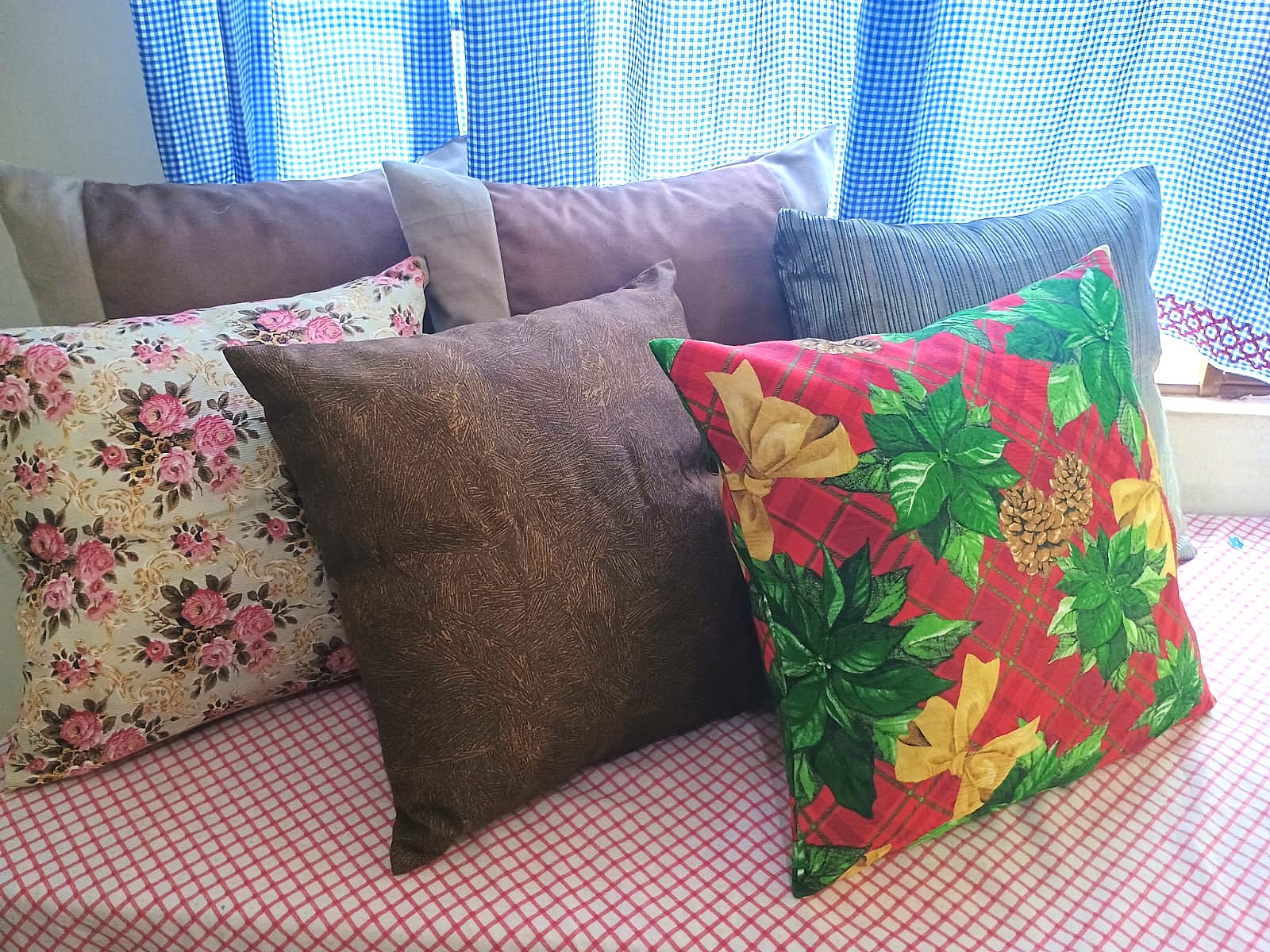 Entre os trabalhos produzidos estão almofadas, tapetes, travesseiros, pesos de porta, entre outros.