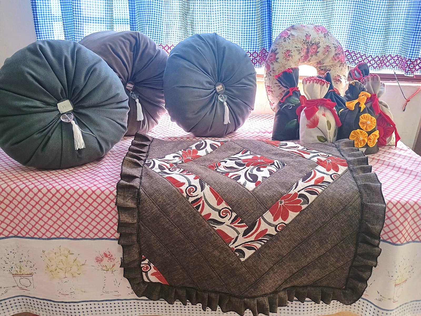 Entre os trabalhos produzidos estão almofadas, tapetes, travesseiros, pesos de porta, entre outros