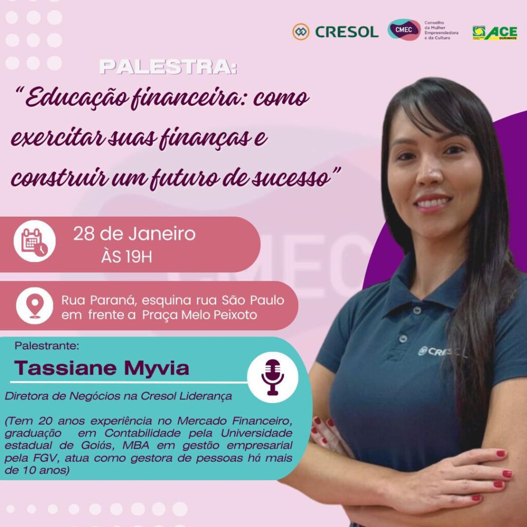 O grupo, que apoia e incentiva o empreendedorismo feminino, tem grande atuação na cidade e traz para seu primeiro encontro do ano a palestra: “Educação Financeira: como exercitar suas finanças e construir um futuro de sucesso”, com Tassiane Myvia, Diretora de Negócios na Cresol Liderança.