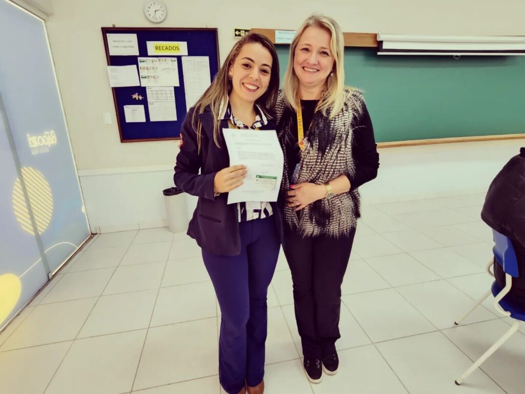 Rebecca Melo diretora do Bagozzi Ourinhos e Ângela Basso diretora geral da Rede OSJ de Educação