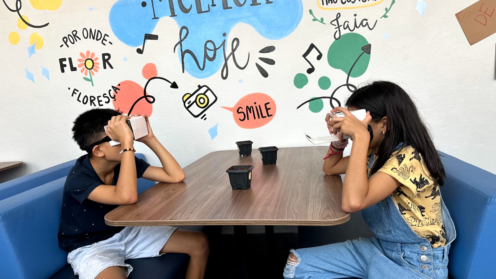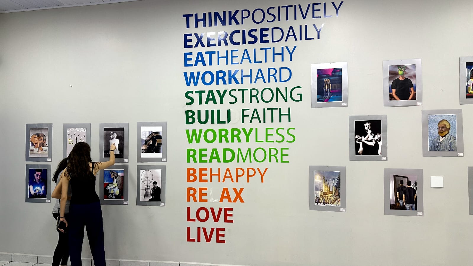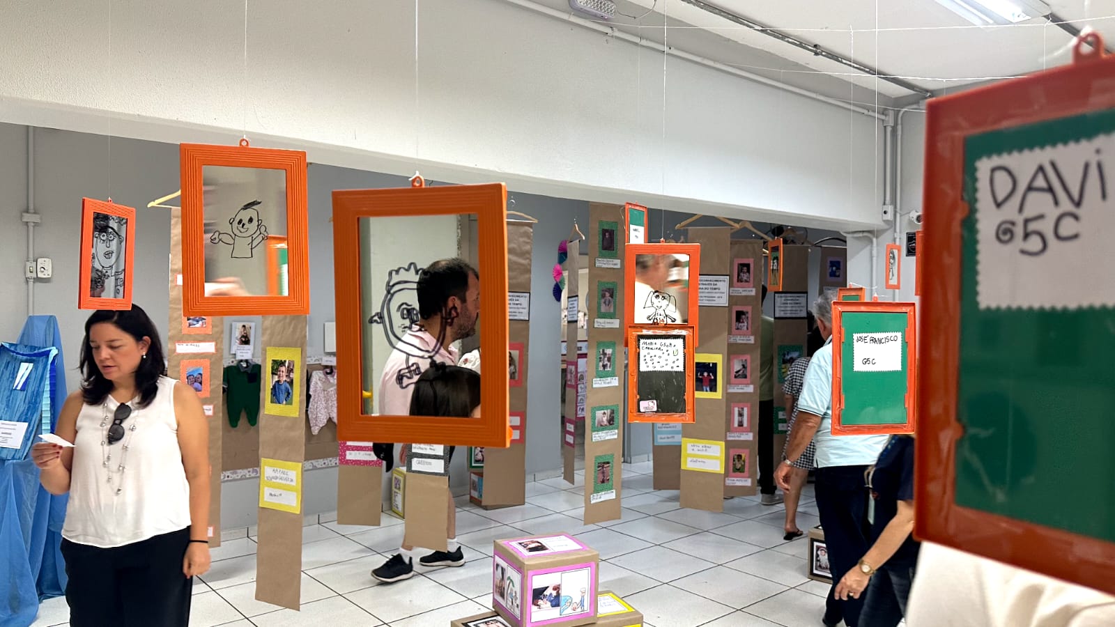 Os trabalhos produzidos pelos alunos puderam ser apreciados desde o saguão, passando pelos corredores até as salas de aulas e mezanino.