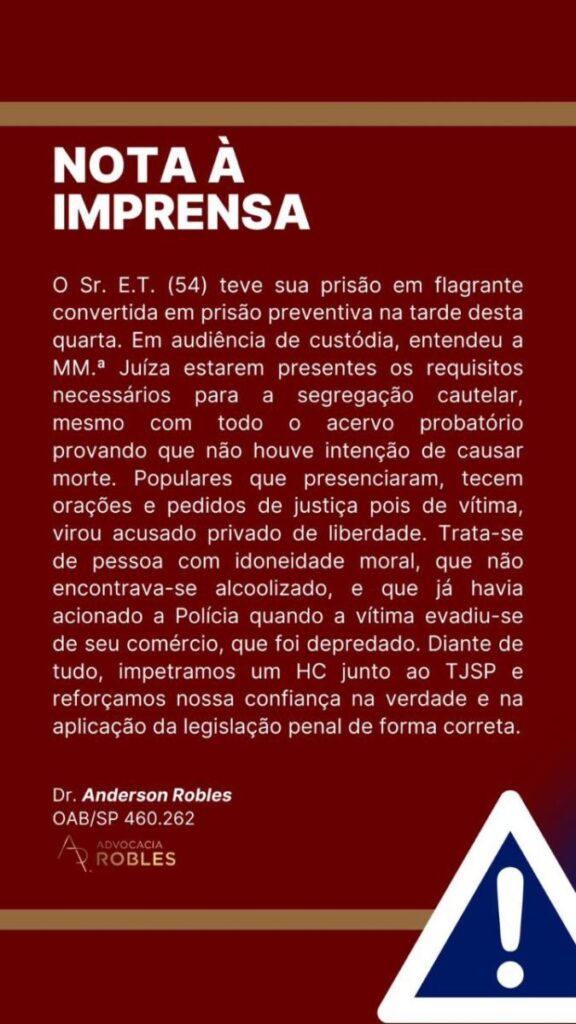 A juíza responsável pelo caso determinou que o acusado tem os requisitos necessários para continuar preso. O advogado de defesa do comerciante entrou com Habeas Corpus e emitiu nota onde diz que seu cliente não teve a intenção de matar. “Populares que presenciaram tecem orações e pedidos de justiça pois de vítima, virou acusado privado de liberdade. Trata-se de pessoa com idoneidade moral, que não encontrava-se alcoolizado, e que já havia acionado a polícia quando a vítima evadiu-se do seu comércio, que foi depredado”.
