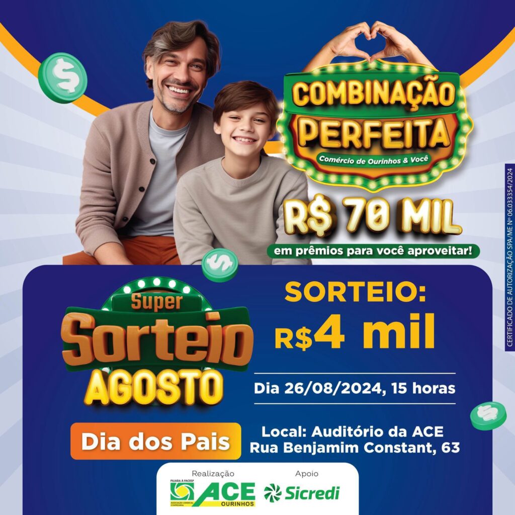 Importante destacar também que a Promoção da ACE “Combinação Perfeita – Comércio de Ourinhos & Você” está com a campanha de Dia dos Pais e as lojas participantes estão distribuindo cupons para os clientes – uma ótima oportunidade de encontrar o presente para os pais e ainda ganhar prêmios.