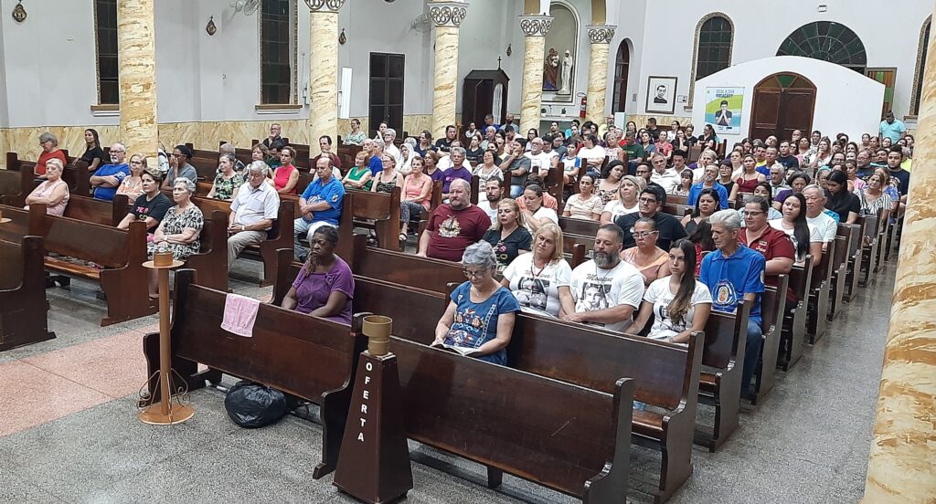 Os cursilhistas tiveram um momento muito bonito na última segunda-feira, 19, por ocasião do falecimento da filha de um casal muito atuante no Movimento, os queridos Adilson e Silvana Nahirnhak. A celebração da missa de 7º dia da jovem aconteceu justamente no dia da tradicional reunião de formação que acontece todas as segundas-feiras na Casa de Encontro “Monsenhor Oswaldo André Violante”.