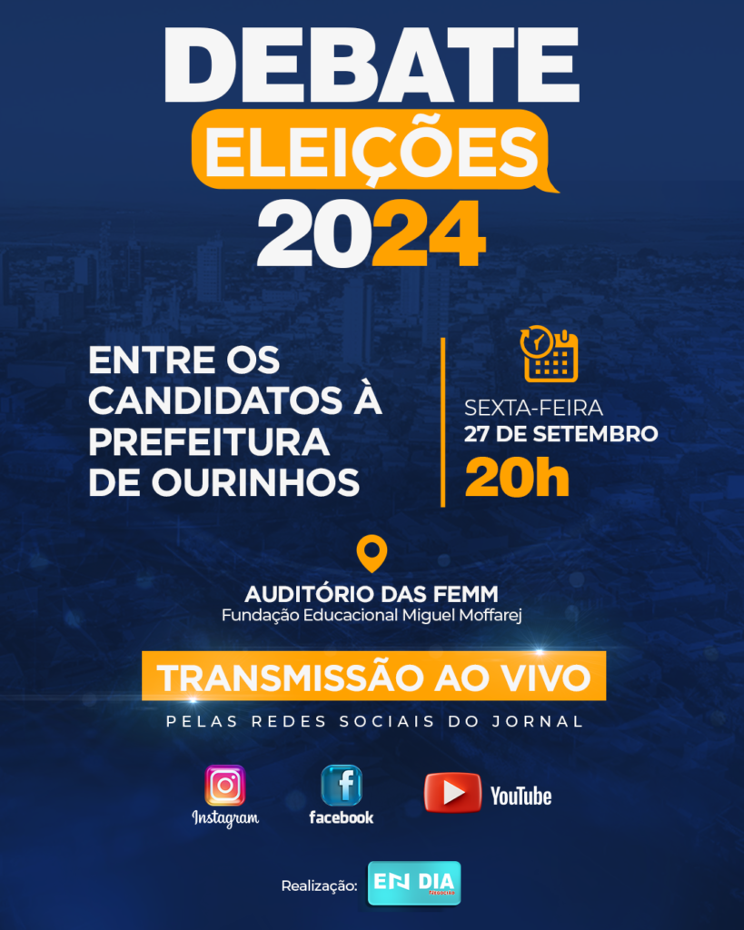 O Jornal EN DIA, do Grupo NEGOCIÃO de Comunicação, promoverá debate com os candidatos à prefeitura de Ourinhos. O evento acontecerá no auditório das FEMM – Fundação Educacional “Miguel Mofarrej” no dia 27 de setembro, sexta-feira, a partir das 20h00.