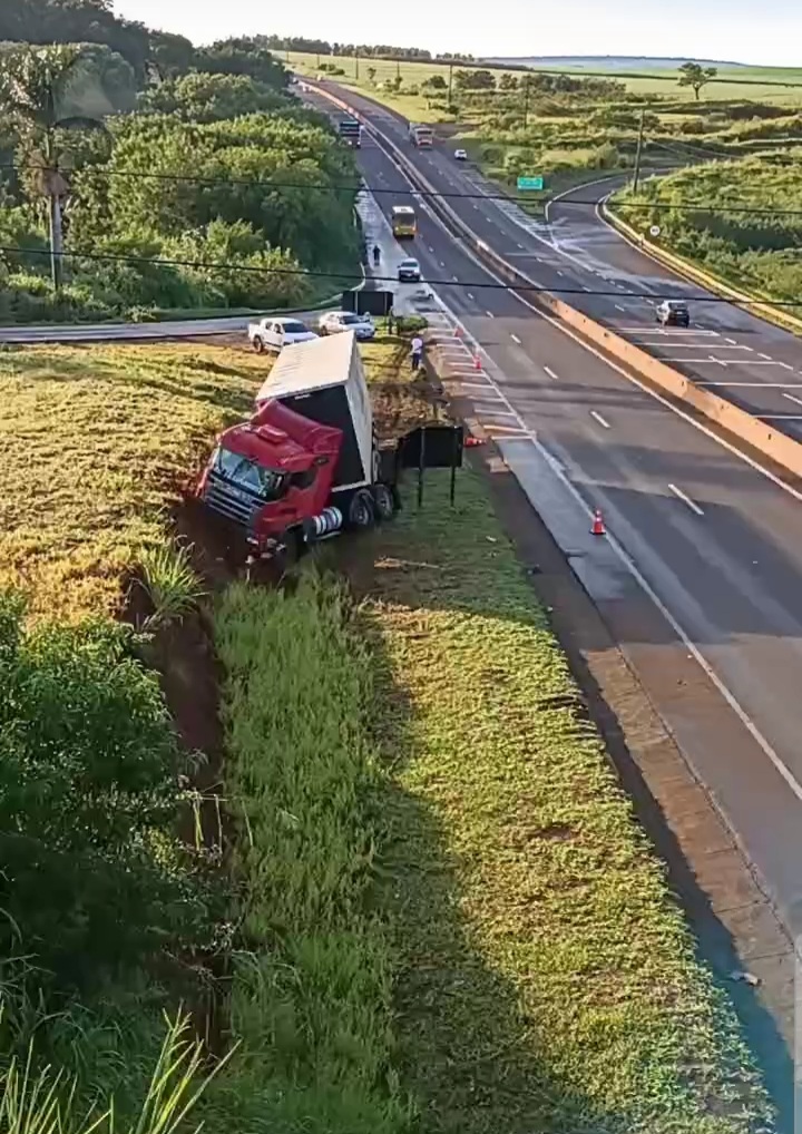 Equipes da concessionária responsável e da Polícia Rodoviária foram acionadas para atendimento da ocorrência e atuaram na sinalização do tráfego, que ficou parcialmente interditado.