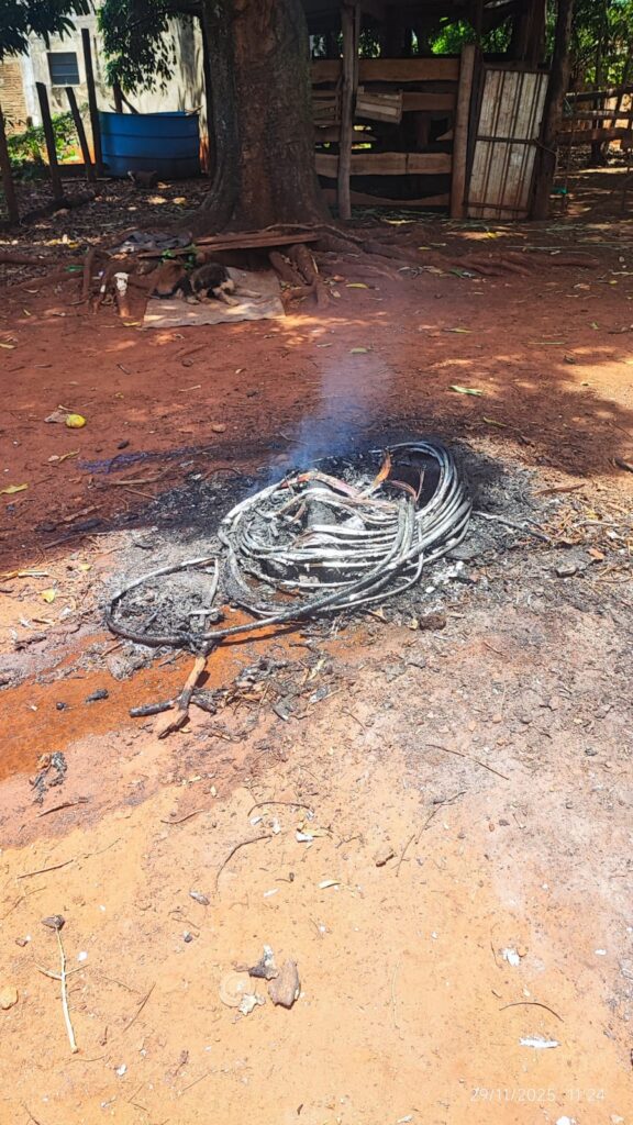 Ao perceber a aproximação policial, Claudinei tentou empreender fuga, sendo imediatamente contido e algemado. Na residência também estava E. S. R., 35 anos, que auxiliava na extinção do fogo enquanto os fios esfriavam.