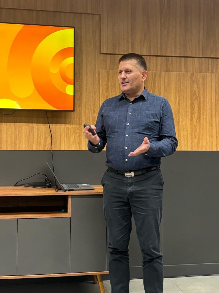 Lyncon Bussata, analista de comunicação encerrou o encontro falando sobre as ações sociais da Cresol. Foram 31 projetos beneficiados com R$ 193 mil em 2024 nas mais diversas áreas, além de ações comunitárias e campanhas para arrecadação de brinquedos, doces e agasalhos.
