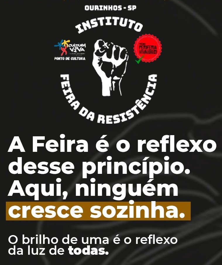 O Instituto Feira da Resistência promove nesse domingo, 09/11, a partir das 13h00, uma nova edição da Feira da Resistência. O evento tem o apoio da Secretaria Municipal de Cultura de Ourinhos e será realizado na Praça Henrique Fitipaldi (Praça da Drink), na Vila Kennedy em Ourinhos.