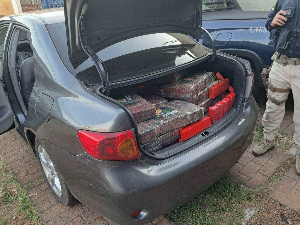 Em vistoria no interior do veículo, foram encontradas substâncias análogas à maconha, posteriormente constatados 526 kg. Em consulta aos sistemas, verificou-se que a placa não correspondia ao chassi do veículo. Após verificação pelo número do chassi, constatou-se tratar-se de produto de furto na cidade de Campo Mourão/PR no último dia 5, mas utilizava placas clonadas para despistar a fiscalização.