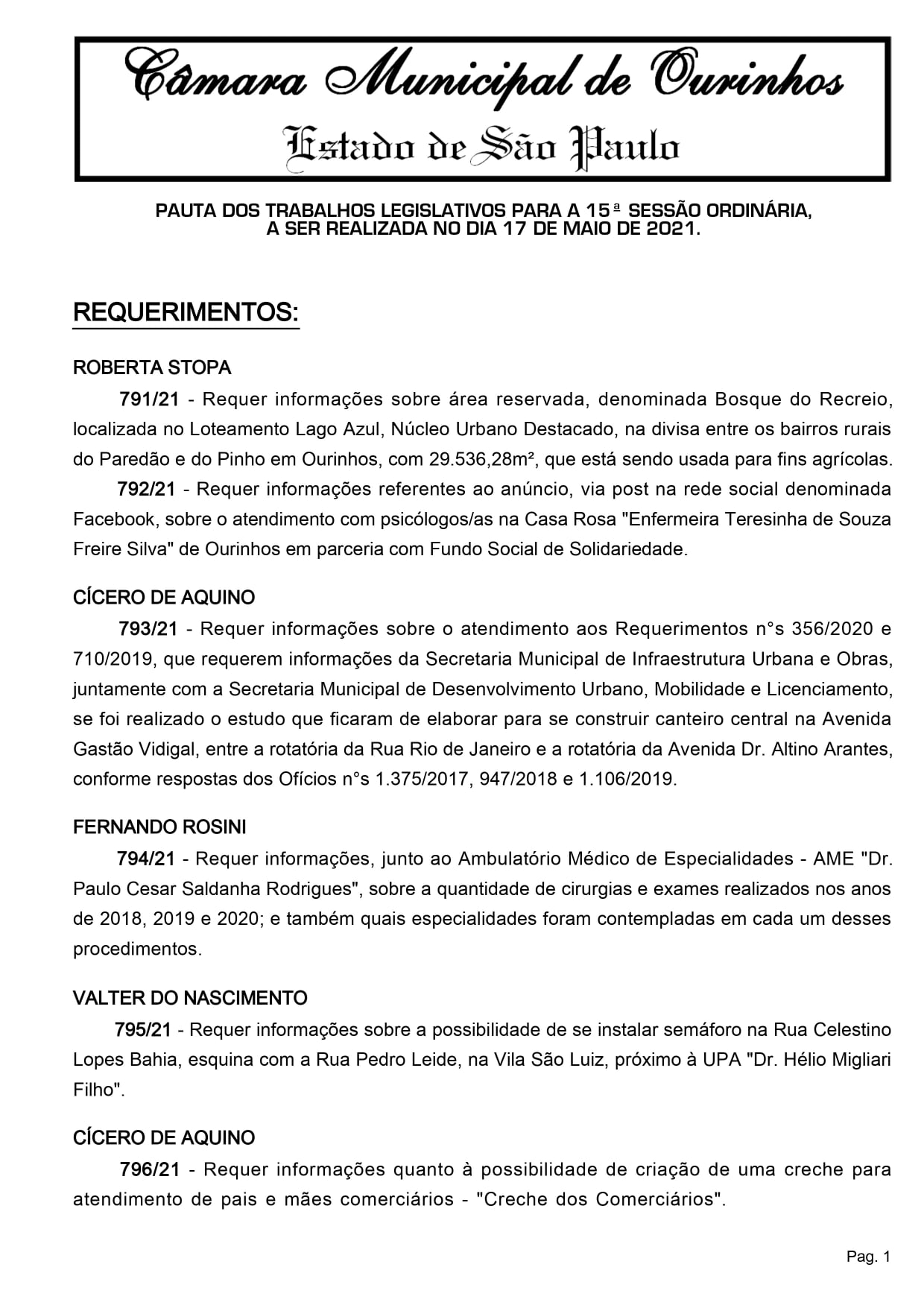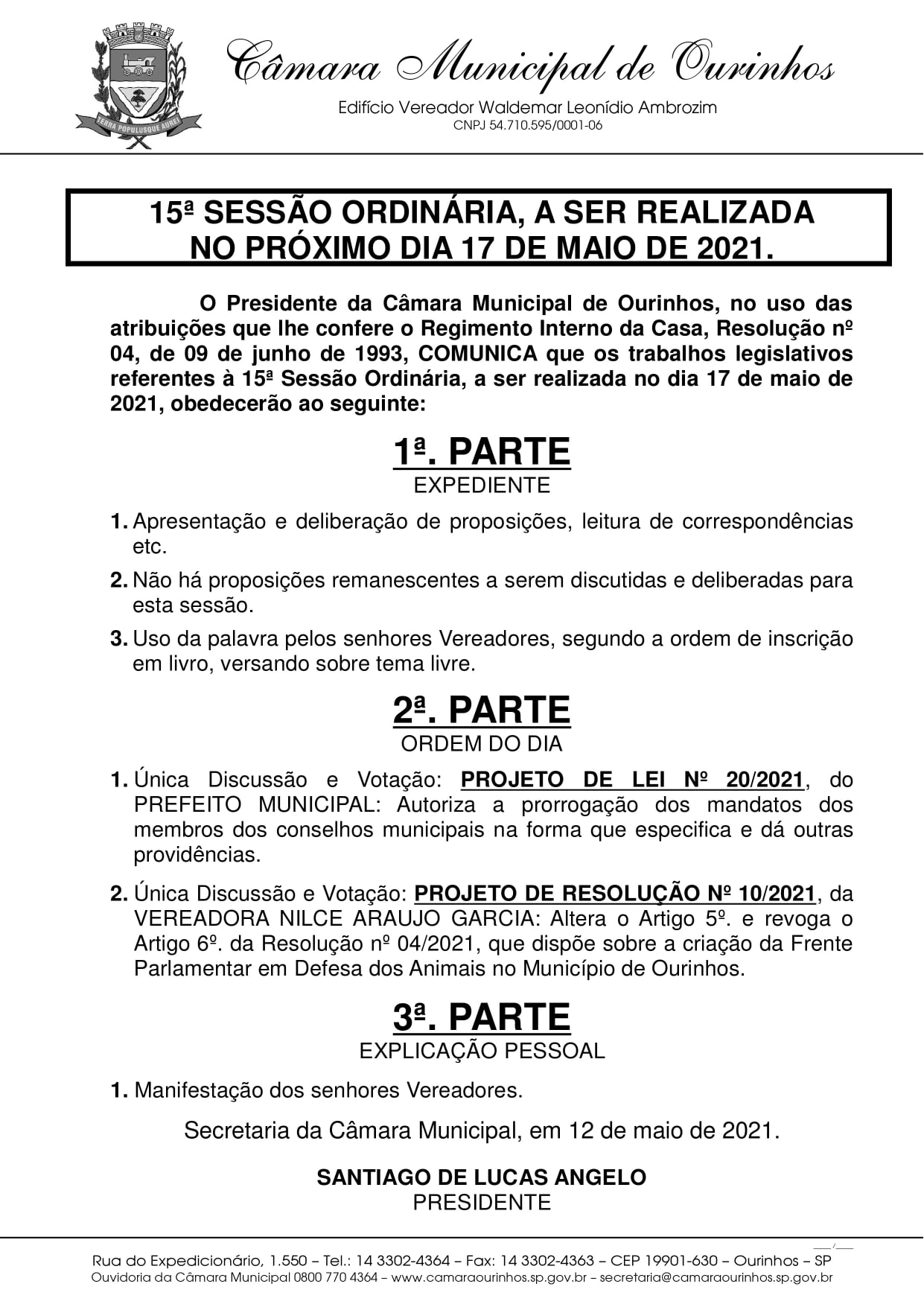 Início » Hoje, às 17 horas, acontecerá a 15ª Sessão Ordinária de 2021.