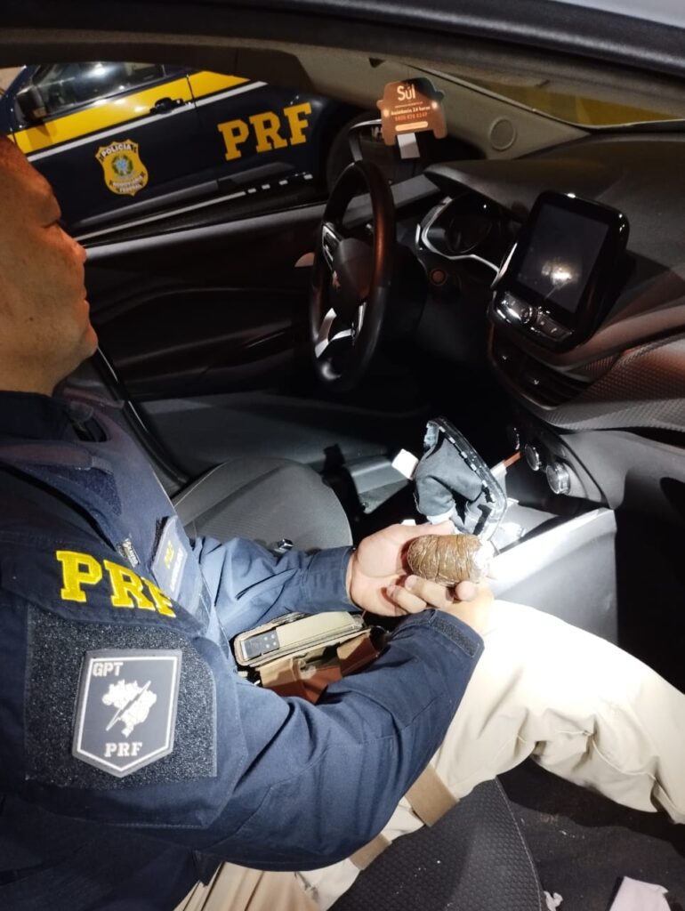 O flagrante ocorreu às 18h30, quando a equipe fiscalizava no km 345 da BR-153, em Ourinhos/SP, e deu ordem de parada ao motorista de um Onix que vinha sentido Paraná-São Paulo. Durante a abordagem os policiais perceberam nervosismo anormal e sentiram cheiro da droga no interior do veículo.