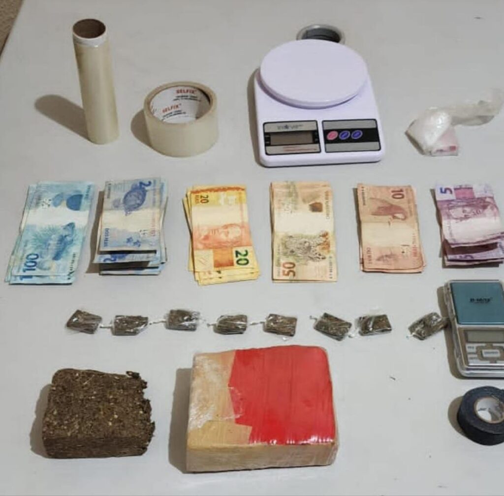 O jovem foi abordado na rua Nilso Gaspar, onde foi revistado e nada de ilícito foi encontrado, mas diante das denúncias, o jovem autorizou a entrada dos policias em sua casa, onde estava também sua namorada, e em busca no imóvel encontraram um tijolo e meio de maconha, oito porções menores da droga embaladas, uma balança de precisão, apetrechos para embalar as drogas, além de R$ 1.221,00 em dinheiro.