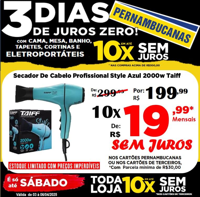 Secador de Cabelo Profissional Taiff 10x R$ 19,99
