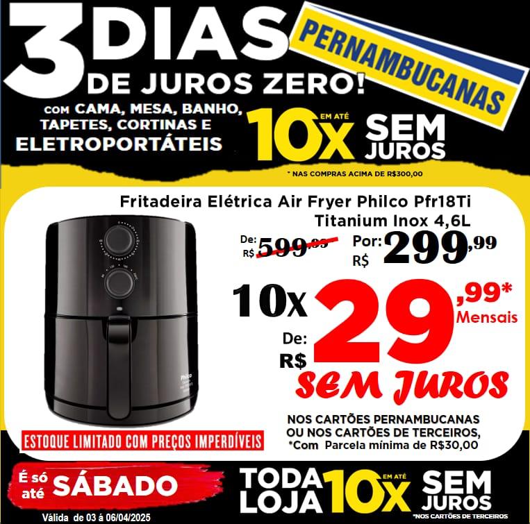 Fritadeira AIRFRAY Philco 10x R$ 29,99