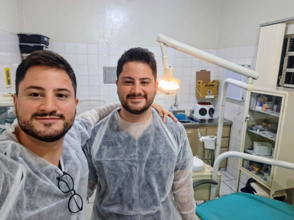 Os profissionais Murilo e Miguel Meneguin, irmãos gêmeos, que integram a equipe responsável pelo atendimento de urgência e emergência odontológica, estão se destacando no serviço prestado no período noturno na Vila São Luiz.