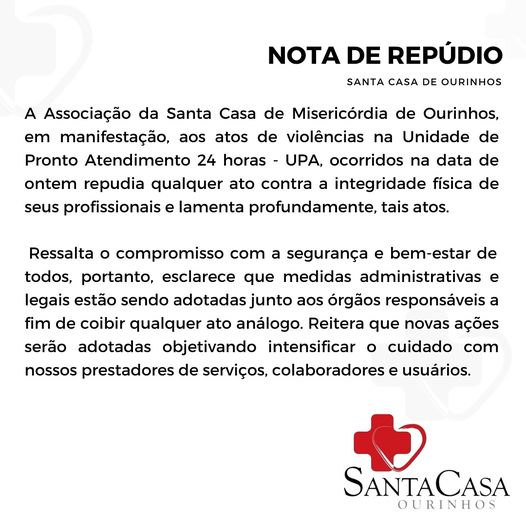 A Santa Casa de Ourinhos, que administra a UPA, emitiu uma nota na quinta-feira (21), repudiando o ataque e dizendo que “medidas administrativas e legais serão adotas junto aos órgãos responsáveis para coibir qualquer ato análogo”.