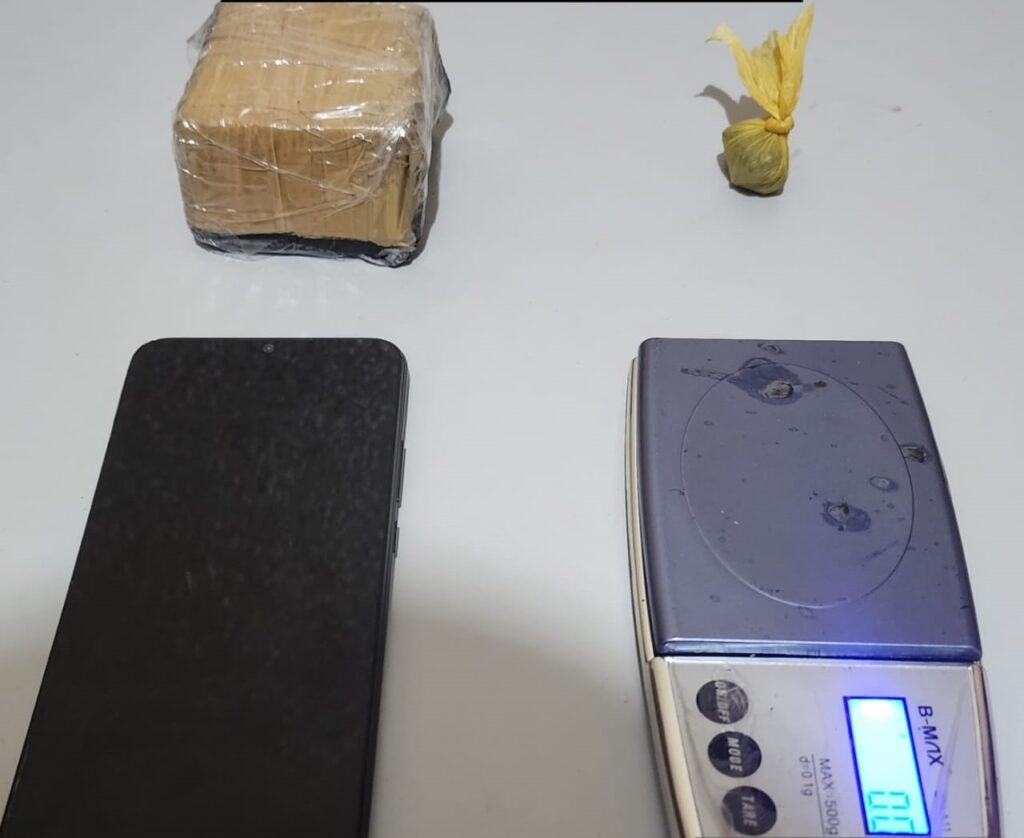Após breve acompanhamento, o suspeito foi abordado pelos policiais sendo encontrada com o mesmo uma porção de maconha juntamente com um celular. Na sequência, durante busca domiciliar, foi apreendido mais uma porção maior de maconha a ser fracionado, além de uma balança de precisão.