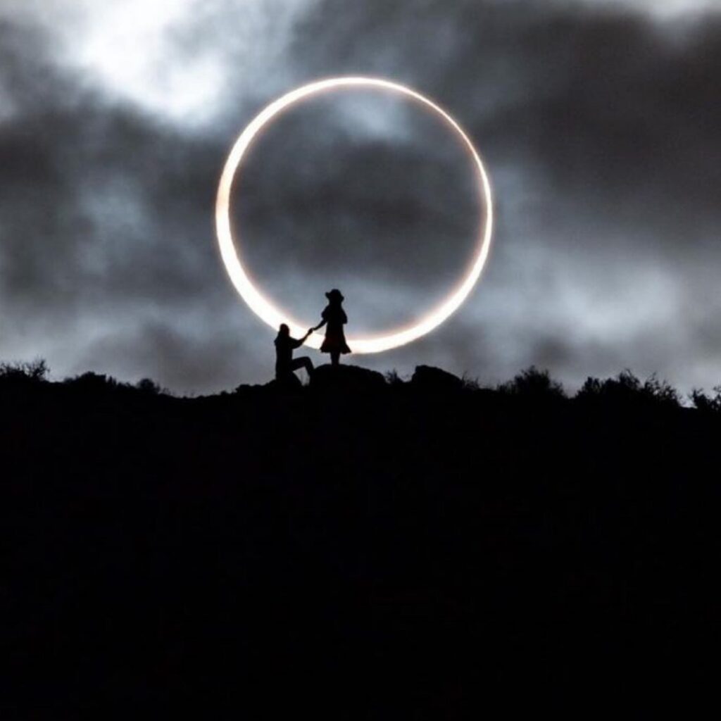 Para outros, o eclipse foi um momento único em que ficaram marcados na história de suas vidas. Foi o caso do jovem Jerry Zhang, que decidiu pedir a namorada, Amber, em casamento em meio a uma viagem do casal ao Lago Abert, no Oregon, Estados Unidos.