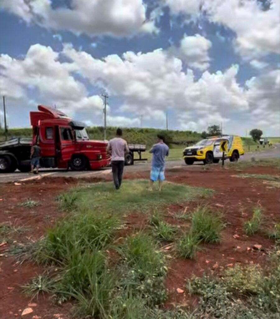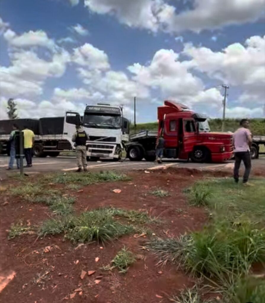 O acidente envolveu duas carretas: uma Volvo FH, de cor branca, com placas de Abatiá/PR, e uma carreta Scania 113, de cor vermelha, com placas de São Vicente/SP.