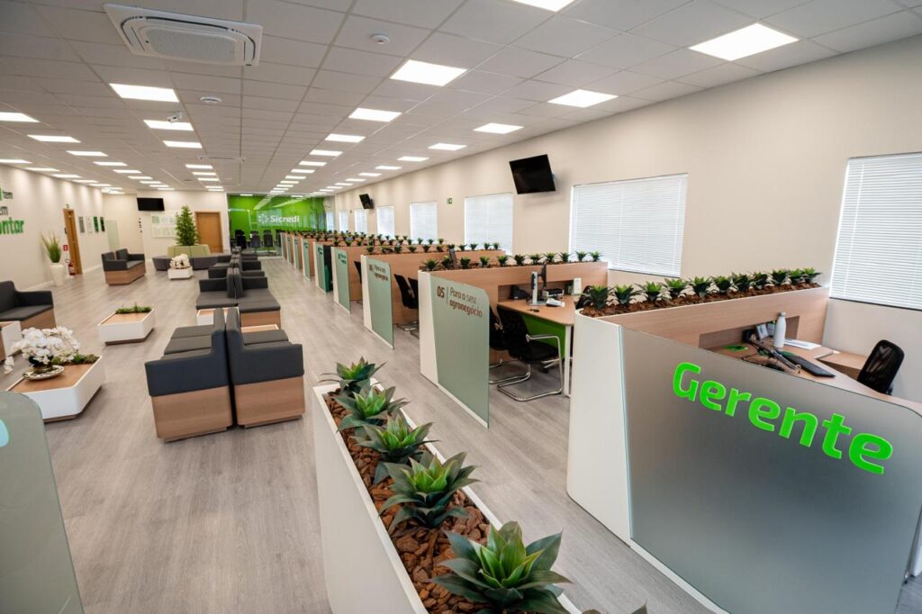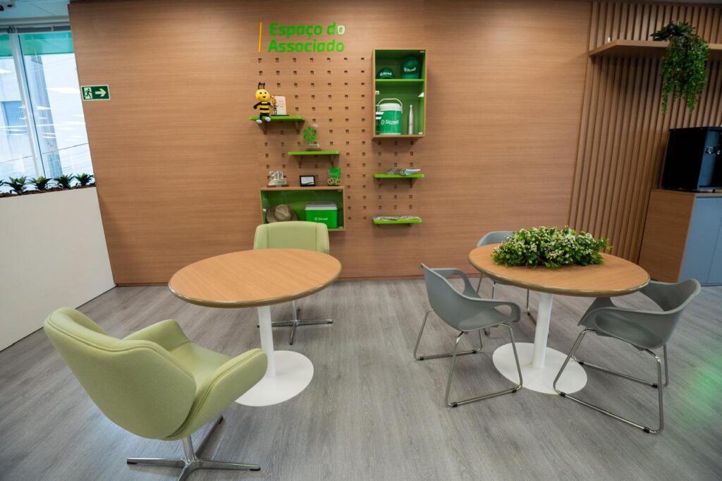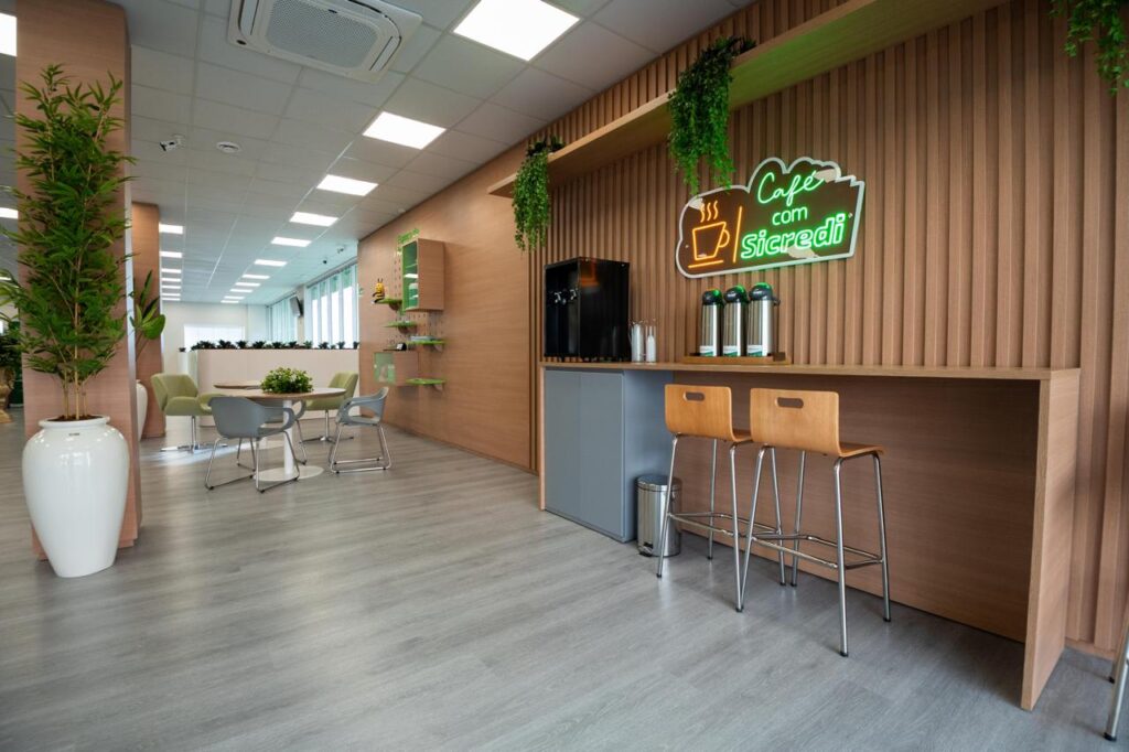 O ambiente tem áreas de relacionamento, tecnologia que agiliza os serviços e uma proposta acolhedora, reforçando o jeito simples e próximo de atender do Sicredi.