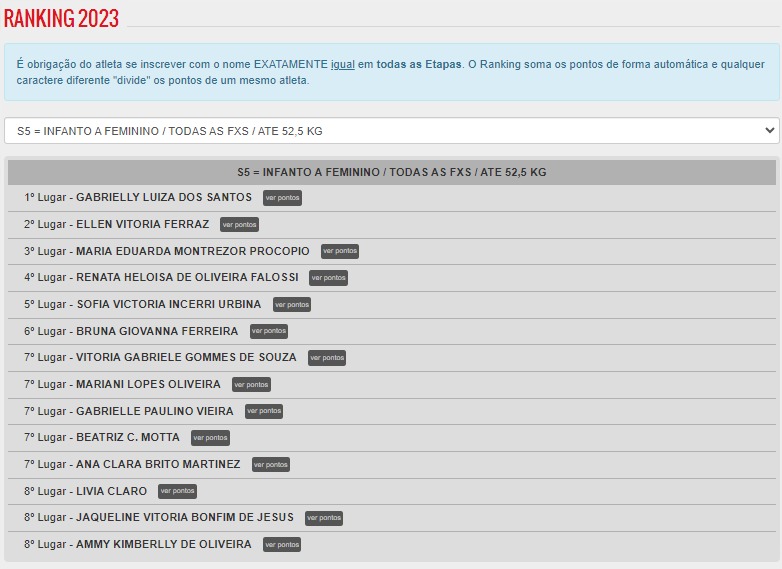 Com a vitória Gabrielly se tornou líder no Ranking 2023 da modalidade