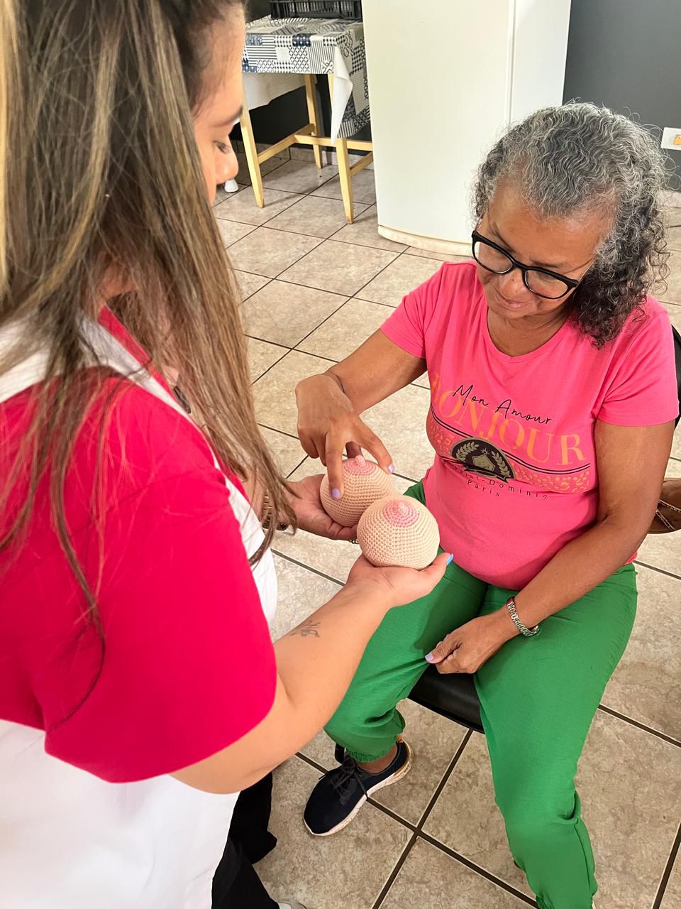 Outra atividade realizada foi um bate-papo com a psicóloga Rafaela Robles. “Também tivemos um bate-papo enriquecedor sobre o tema “Outubro Rosa” com o Clube de Mães, conduzido pela psicóloga Rafaela Robles e pela enfermeira Eugênia, reforçando a importância da prevenção e do autocuidado”, prosseguiram.