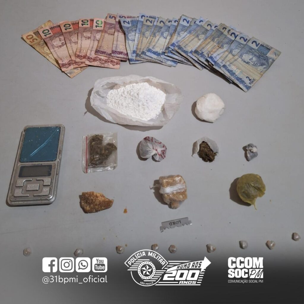 Na madrugada desta segunda-feira (10), prendeu um jovem de 21 anos por tráfico de drogas no bairro Vandelena Moraes Freire em Ourinhos.