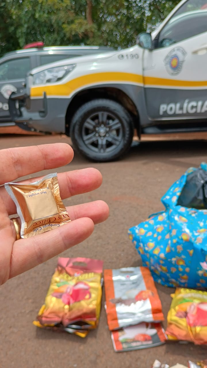 Na presença da proprietária, a mala foi aberta, e dentro foram localizados sete pacotes de chocolate em pó contendo, em seu interior, pequenas embalagens com pasta base de cocaína, pesando 4,320 kg.
