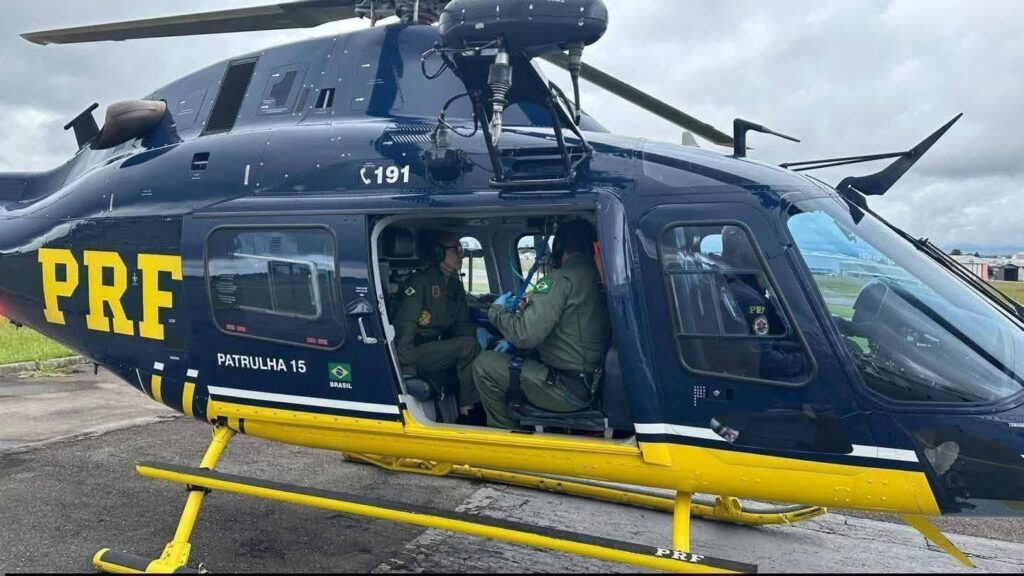 No aeroporto, o helicóptero Patrulha 15, da PRF, já aguardava para realizar a etapa final da missão.