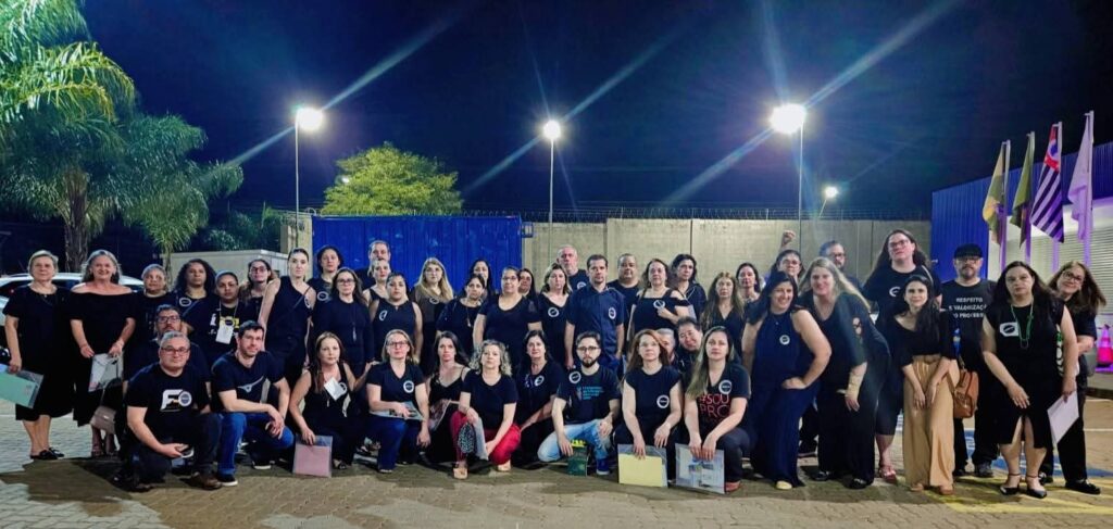 A manifestação silenciosa teve o objetivo de chamar a atenção da administração para o cumprimento do acordo feito entre sindicato e prefeitura no mês de abril de 2025, que inclui a reestruturação do plano de carreira e outras demandas importantes para a classe.