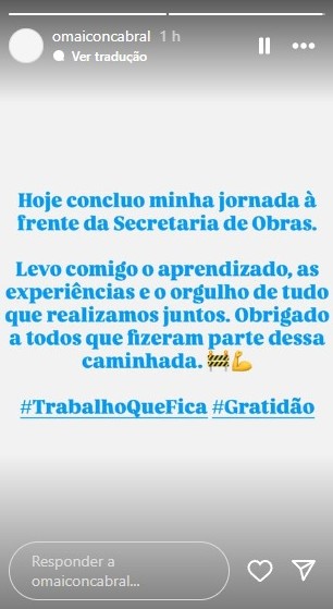 Depois de muitas conversas de bastidores, o Secretário de Infraestrutura e Obras, Maicon Cabral anunciou a sua exoneração do cargo nesta terça-feira, 14 de outubro. Em seu lugar assume o então vereador Santiago de Lucas Ângelo.