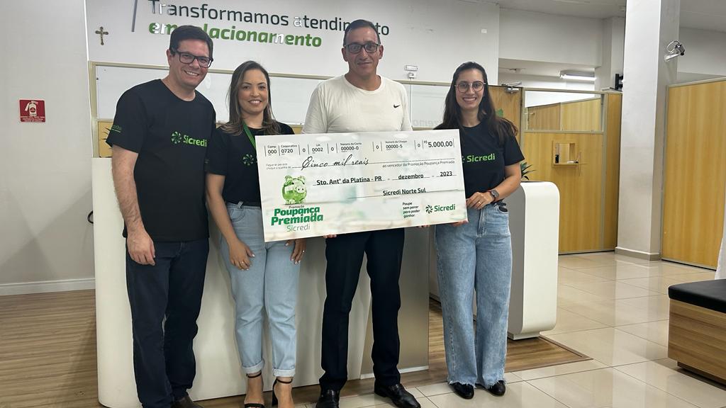 A Sicredi Norte Sul entregou dois prêmios de R$ 5 mil em dezembro referente ao último sorteio semanal da Promoção Poupança Premiada 2023. Ambos associados são da agência de Santo Antônio da Platina/PR. A entrega simbólica aconteceu na última sexta-feira (22/12).