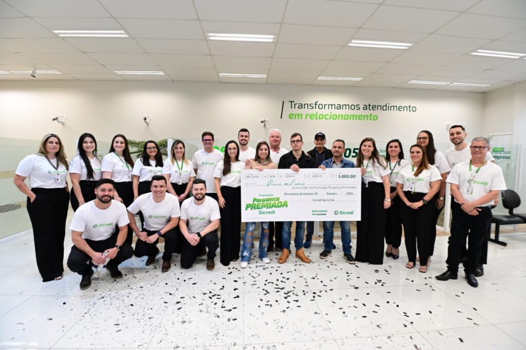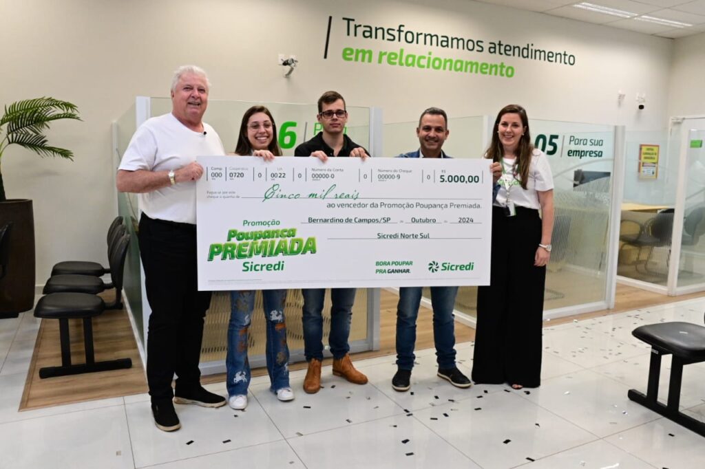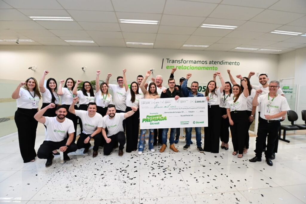 A Sicredi Norte Sul acaba de entregar mais um prêmio da Poupança Premiada na região. Dessa vez, o associado sorteado foi de Bernardino de Campos/SP e ganhou R$5 mil no sorteio semanal da promoção. Heber Soares de Oliveira foi surpreendido na agência, onde recebeu a notícia do Presidente da cooperativa, Paulo José Buso Junior, juntamente com toda equipe de atendimento. Também estiveram presentes na comemoração diversos gerentes das agências da região de São Paulo. Um momento de muita alegria.