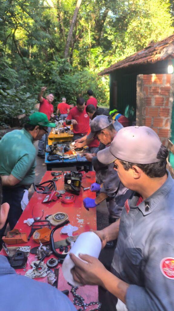 OURINHOS – com a participação do Corpo de Bombeiros do município, foi realizado curso sobre Operação e Manutenção de Motosserra, entre os dias 4 e 6 de junho. O evento aconteceu no Parque Ecológico da cidade. Foram abordados tópicos ligados a componentes, montagem e manutenção da motosserra, regras de segurança e uso correto dos EPIs, técnicas de corte e derrubada de árvores, afiamento, lubrificação, abastecimento e muito mais!