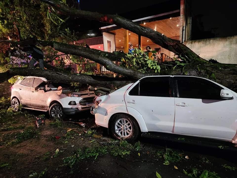 Ventos fortes de até 117,5 Km/h derrubaram árvores e carros foram atingidos