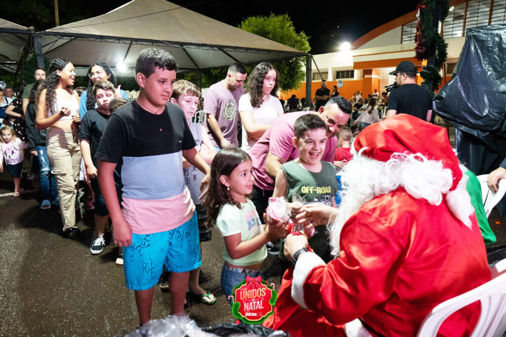 PAPAI NOEL – A presença do Papai Noel foi outro ponto alto da celebração, encantando as crianças e trazendo ainda mais alegria ao evento. Mesmo com a chuva, o espírito natalino aqueceu os corações de todos os presentes, reforçando o valor da solidariedade. “Foi emocionante ver tantas pessoas unidas por uma causa tão especial. Mesmo com o clima desafiador, o calor humano fez toda a diferença”, destacou Caio Lima, emocionado com o resultado do evento.