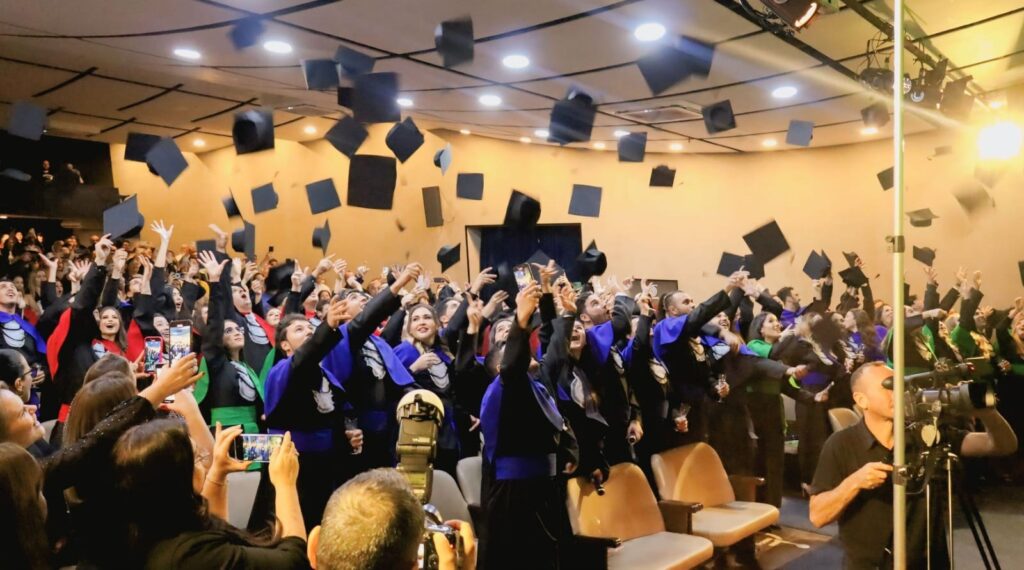 Familiares e amigos dos formandos lotaram o Teatro Roque Quagliato, do CSA, para prestigiar os novos profissionais que comemoraram a conquista num clima de muita alegria e emoção.